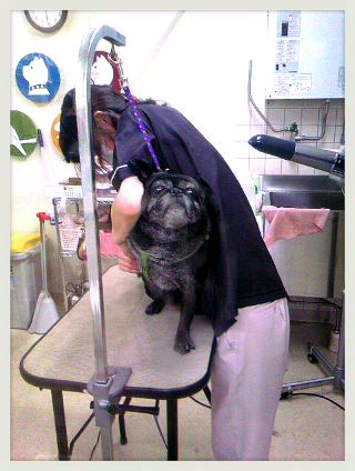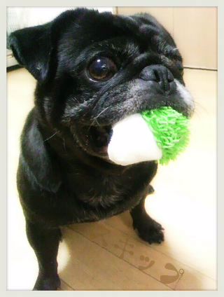たまたま見つけたパグの置物を見て、私が脳裏によぎり、パグ好きだから喜んでもらえると思った。